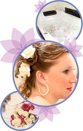 Penteado, maquiagem, pé e mão, depilação, limpeza de pele, massagem, banho relaxante em hidro, lanche, preparação e troca.